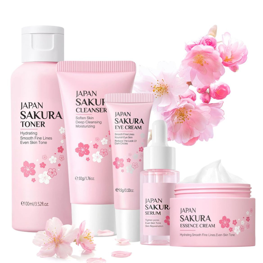 Japan Sakura 5-in-1 Skincare Set | Cleanser, Toner, Serum, Eye Cream & Essence Cream